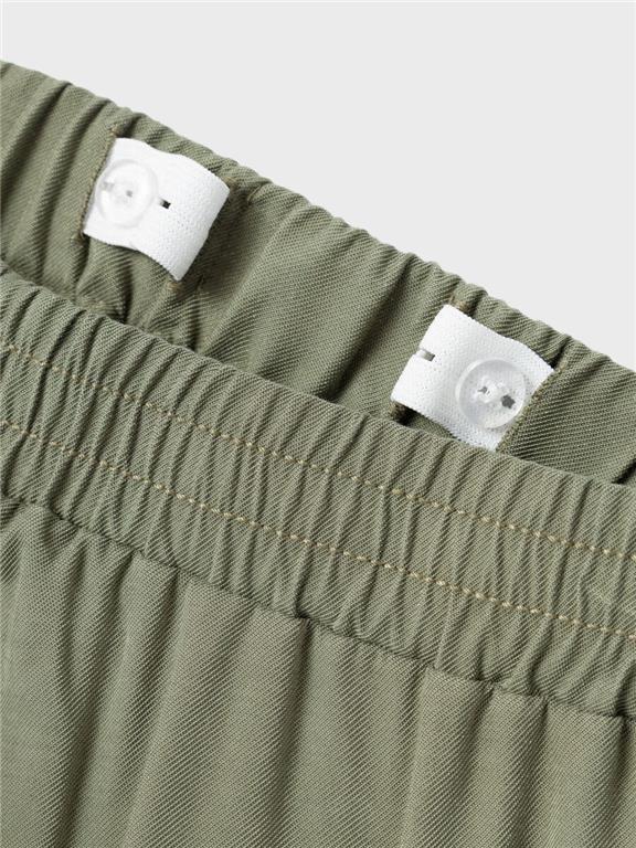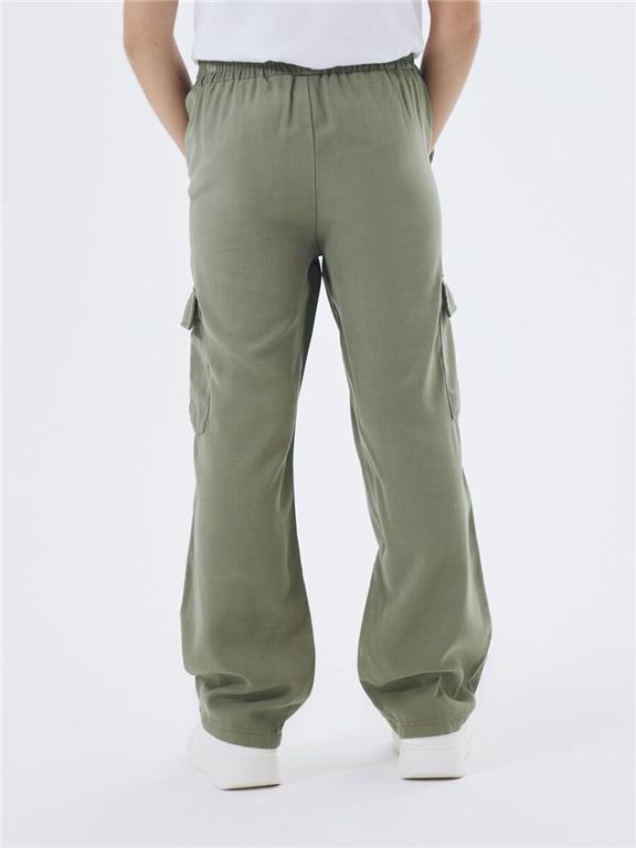 Otroške dekliške modne in izjemno udobne široke cargo hlače, iz lahke viskoze, z elastiko v pasu, z dvema žepoma spredaj in dvema cargo žepoma na straneh, nastavljiva širina pasu, rahlo baggy kroj v pasu in raven kroj hlačnic. Material: 93% viskoza, 7% elastan