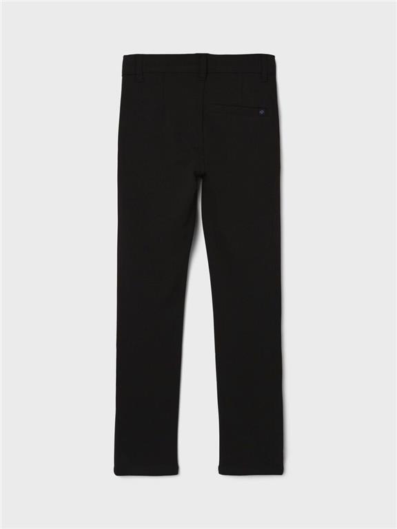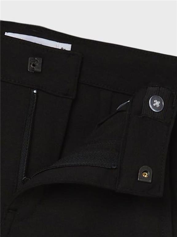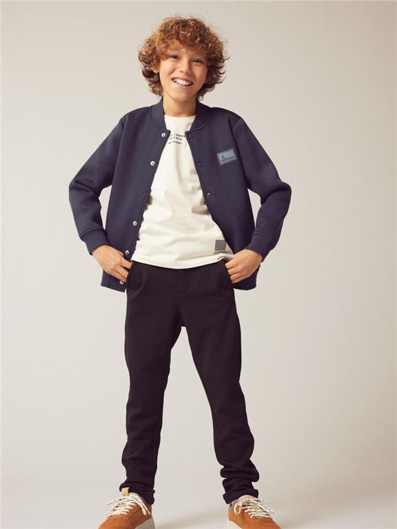 Otroške fantovske modne in udobne hlače elegantnega videza, x-slim kroj, iz prijetnega in raztegljivega materiala, zapenjanje z gumbom in zadrgo in zankami za pas, z dvema stranskima žepoma in žepom zadaj, z dekorativnim našitkom zadaj, nastavljiva širina pasu. Material: 64% viskoza, 31% poliester, 5% elastan