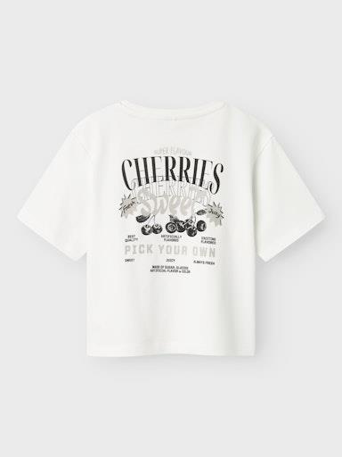 Otroška dekliška modna majica iz prijetnega ekološkega bombaža, z manjšim potiskom spredaj in velikim zadaj, z bleščičastimi detajli, rahlo širši in krajši kroj, kratek rokav. Material: 100% ekološki bombaž