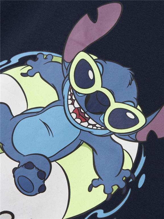 Otroška fantovska majica s kul licenčnim potiskom priljubljenega lika Stitch-a, rahlo širši in krajši kroj, kratek rokav. Material: 95% bombaž, 5% elastan