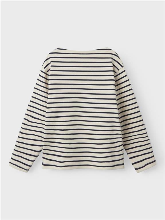 Otroška dekliška modna majica iz prijetnega ekološkega bombaža, z all over črtastim vzorcem, rahlo širši kroj, dolg rokav. Material: 95% ekološki bombaž, 5% elastan