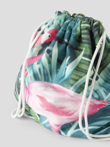 Otroška dekliška brisača z all over poletnim potiskom za na plažo, ki se priročno lahko zloži v majhen nahrbtnik, z vrvicami za naramnice. Univerzalna velikost. Material: 100% poliester