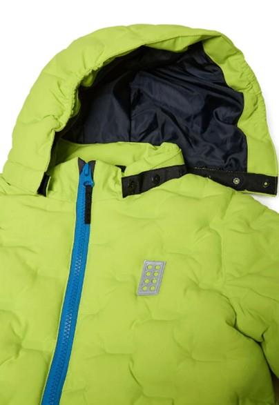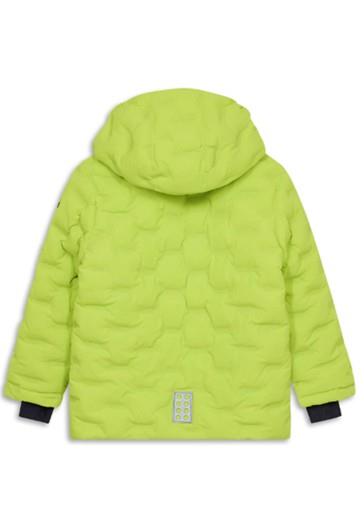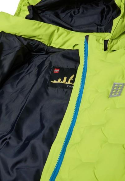 Otroška fantovska LEGO WEAR zimska jakna visoke priznane kakovosti v prešitem videzu, primerna tudi za smučanje, narejena iz odličnega materiala, ki diha, ne prepušča vode (3.000 mm vodnega stolpca) in vetra. V celoti lepljeni šivi! Zapenjanje z zadrgo, odsevni elementi spredaj in zadaj. Odstranljiva kapuca, elastika v zapestju z odprtino za palec, v notranjosti v višini pasu elastika, ki služi temu, da sneg ne more pod jakno, dva žepa na zadrgo na straneh ter žep za karto z zadrgo na rokavu. Material: 100% poliester; polnilo: 100% poliester; podloga v kapuci, rokavih ter v hrbtnem delu: 100% poliester