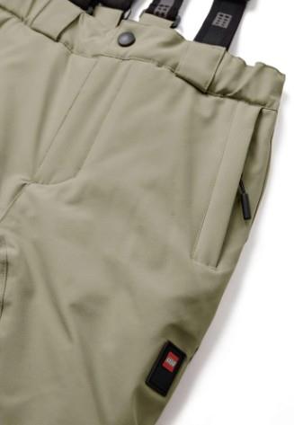 Otroške smučarske hlače blagovne znamke LEGO WEAR, najvišje priznane kakovosti, narejena iz odličnega in vzdržljivega materiala, ki ne prepušča vetra in vode (12.000 mm vodnega stolpca) in ki diha (7.000 g/m2/24h). Lepljeni šivi! Zapenjanje z zadrgo in s pritiskačem, z zankami za pas in ježki za regulacijo širine pasu, z nastavljivimi in odstranljivimi elastičnimi naramnicami, odsevniki na hlačnicah, 2 žepa na zadrgo na straneh. Z odstranljivima gumijastima trakovoma na dnu hlačnic ter ojačanim spodnjim delom hlačnic. Prilagodljiva dolžina hlačnic. Material: 100% poliester; podloga: 100% poliester