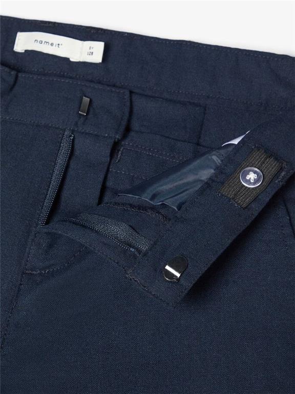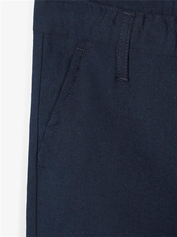 Otroške fantovske lahke poletne hlače v kombinaciji bombaža in lanu, regular kroj, z dvema žepoma na straneh in prešitima žepoma zadaj, z zankami za pas, nastavljiva širina pasu. Material: 70% bombaž, 30% lan