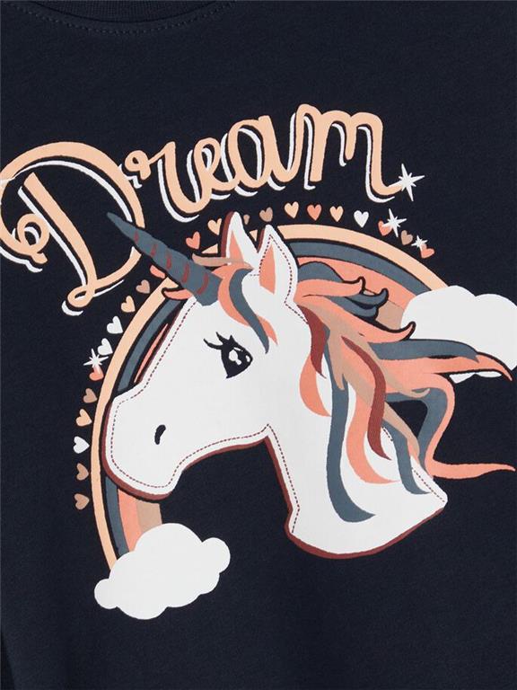 Otroška dekliška majica z dekorativnim potiskom, iz mehkega in prijetnega ekološkega bombaža, regular kroj, dolg rokav. Material: 95% ekološki bombaž, 5% elastan