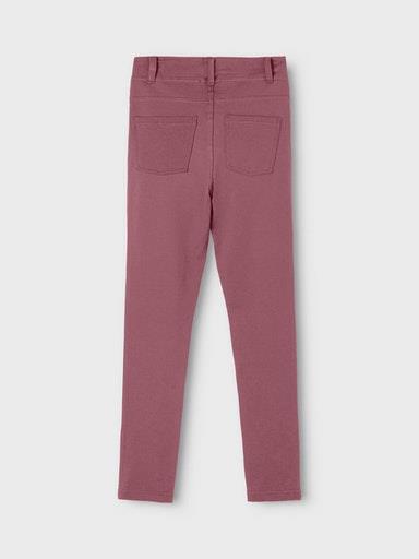 Otroške dekliške nekosmatene legice, zelo mehke in udobne, v videzu hlač, z elastiko v pasu in zankami za pas, nakazana sprednja žepa, dva žepa zadaj, nastavljiva širina pasu. Material: 95% ekološki bombaž, 5% elastan