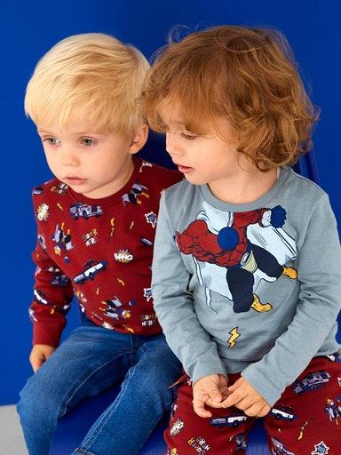 Otroška fantovska majica s kul potiskom spredaj, iz mehkega in udobnega bombaža, regular kroj, dolg rokav. Material: 100% bombaž