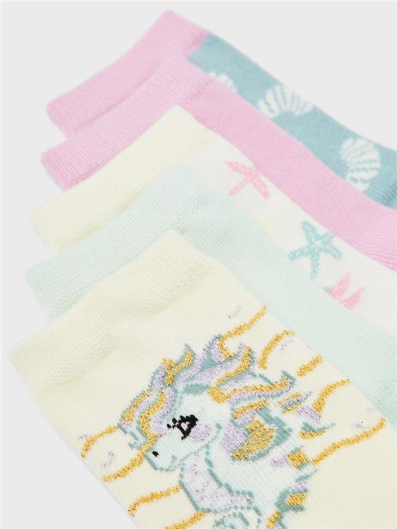 Otroške dekliške nogavice, 5 parov v pakiranju, različni vzorci. Material: 80% bombaž, 17% poliamid, 3% elastan; 2,19€/par