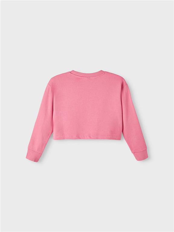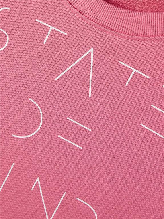 Otroški dekliški modni "crop" pulover z napisom spredaj, rahlo širši in kratek "boxy" kroj, nekosmaten material, s patentom na rokavih, raglan rokav, dolg rokav. Material: 100% bombaž