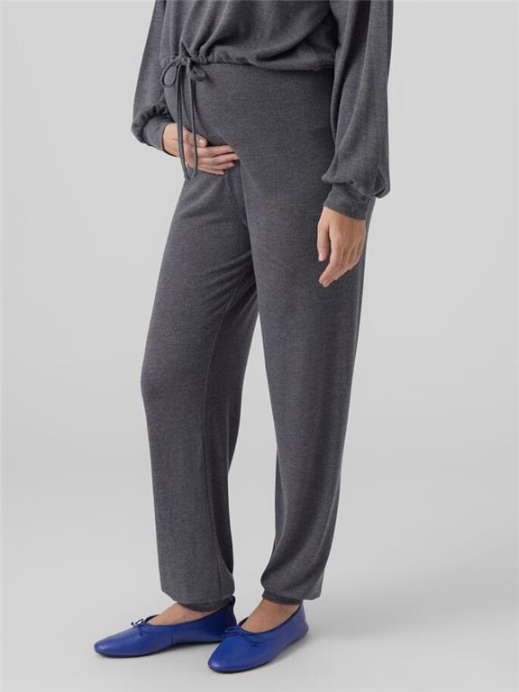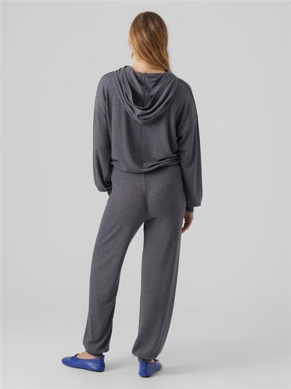 Nosečniške mehke in udobne hlače (trenirka) z visokim pasom, s patentom na hlačnicah. Prilagodljiv kroj za rastoč trebušček. Material: 67% recikliran poliester, 28% viskoza, 5% elastan