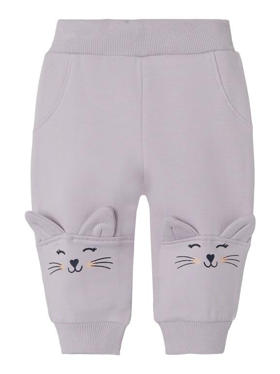 Otroška dekliška mehka in udobna trenirka z elastiko in vrvico v pasu, s prikupnim potiskom in 3D našitkom pri kolenih, s patentom na hlačnicah, kosmaten material. Material: 95% ekološki bombaž, 5% elastan