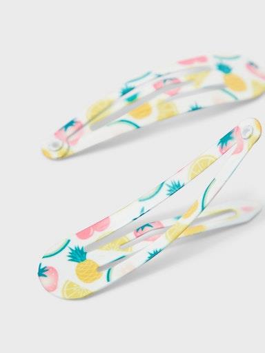 Otroške dekliške špangice s potiskom sadja. 2 kosa v pakiranju. Material: 100% kovina. 1,49€/kos