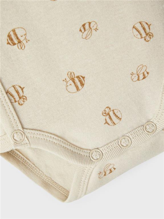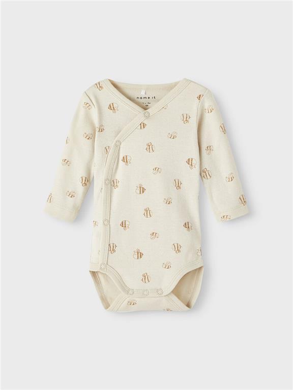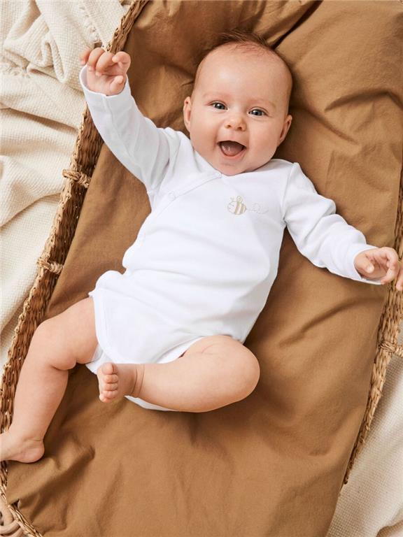 Otroški unisex body na preklop iz mehkega in prijetnega bombaža, 1x z all over vzorcem in 1x z malim vzorcem spredaj, dolg rokav, 2 kosa v pakiranju. V lični embalaži. Material: 51% ekološki bombaž, 49% bombaž; 12,49€/kos