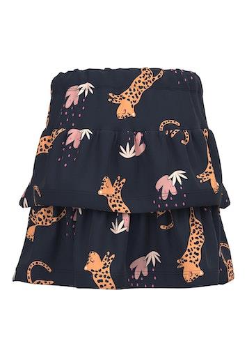 Otroško dekliško lahko poletno kilo z igrivim vzorcem, z elastiko v pasu. Material: 100% bombaž