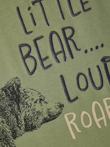 Otroška fantovska majica iz prijetnega in udobnega ekološkega bombaža, s potiskom in izvezenim napisom spredaj, regular kroj, dolg rokav. Material: 95% ekološki bombaž, 5% elastan