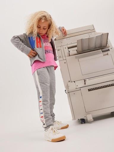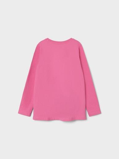 Otroška dekliška majica iz prijetnega materiala, s potiskom z bleščicami spredaj, zadaj rahlo podaljšana, regular kroj, dolg rokav. Material: 95% bombaž, 5% elastan