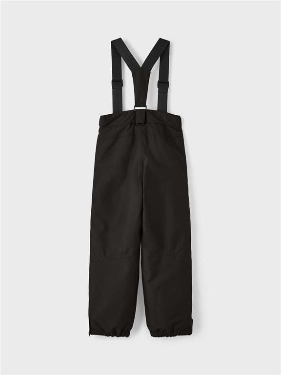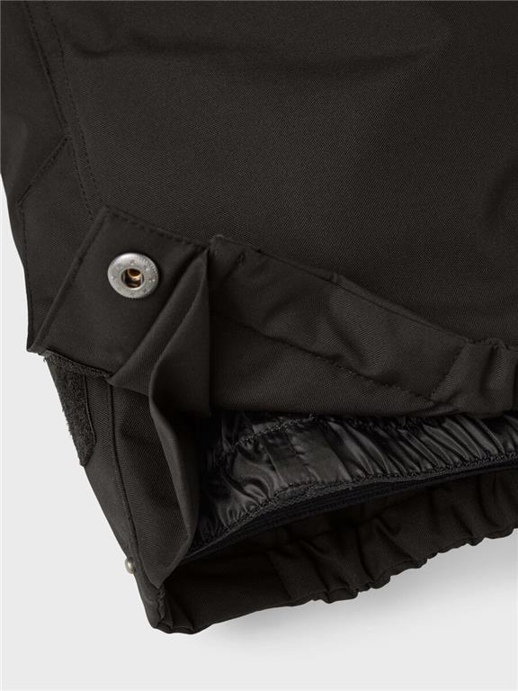 Otroške smučarske hlače iz materiala, ki ne prepušča vetra in vode (10.000 mm vodnega stolpca) in ki diha (4.000 g/m2/24h), lepljeni šivi, Zapenjanje na zadrgo, z ježki za regulacijo širine pasu ter elastiko pri gležnjih, z odsevnimi elementi spredaj in zadaj, z nastavljivimi, elastičnimi (odstranljivimi) naramnicami, odstranljiva in nastavljiva elastična trakova na dnu hlačnic. Dodatno izoliranim in ojačanim sedalnim delom. Material: zunaj: 100% poliester, polnilo: 100% poliester, podloga: 100% poliester, naramnice: 50% poliester, 50% elastan