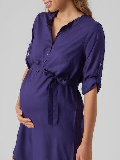 Modna nosečniška bluza/tunika z okrasnim paščkom za zavezovanje, izjemno mehka in prijetna na otip, zapenjanje z gumbi, zavihki na rokavih. 3/4 rokav. Material: 100% viskoza LENZING