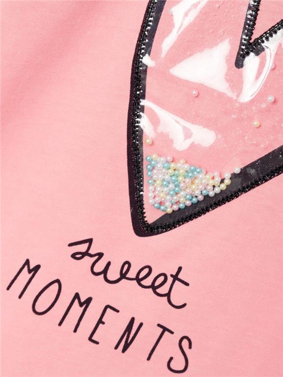 Otroška dekliška modna majica iz prijetnega ekološkega bombaža, s prikupnim potiskom in 3D detajli spredaj, regular kroj, kratek rokav. Material: 51% ekološki bombaž, 49% bombaž