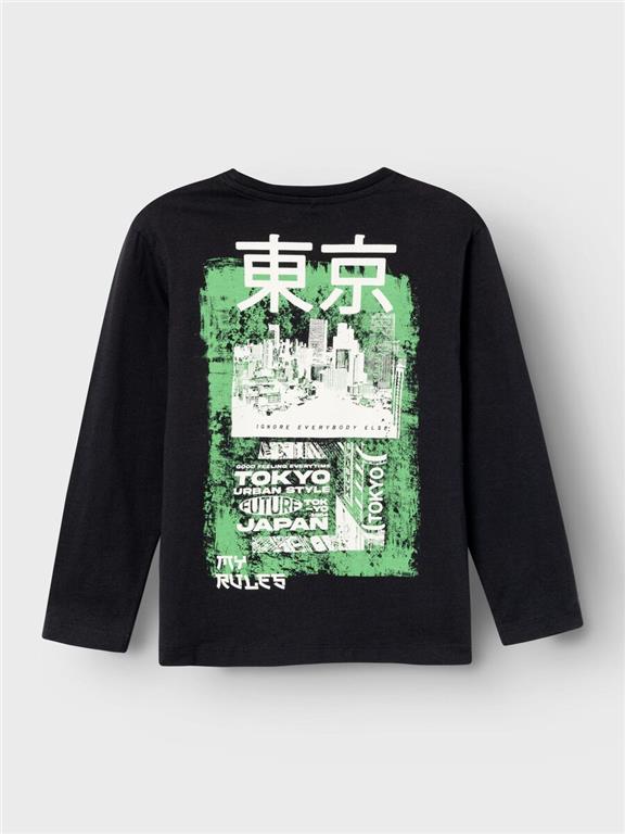 Otroška fantovska modna majica iz prijetnega ekološkega bombaža, s potiskom spredaj in zadaj, rahlo širši kroj, dolg rokav. Material: 100% ekološki bombaž