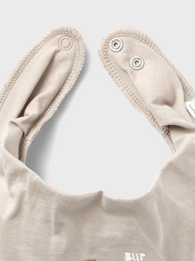 Zelo praktičen, večnamenski otroški slinček/dekorativna rutica, podložena s flisom, ki preprečuje, da bi mokrota hitro prešla na majico. Lahko ga uporabite tudi pri večjih malčkih kot dekoracijo oz. zaščito vratu pred mrazom. Zapiranje s pritiskačem, možnost nastavitve dveh obsegov. Material: zgoraj: 100% ekološki bombaž; spodaj: 100% poliester