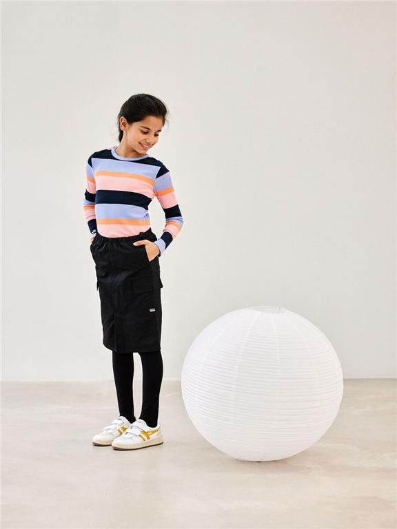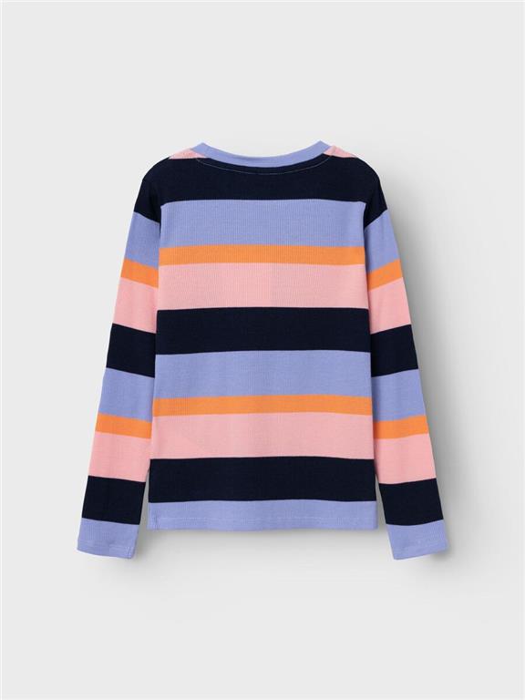 Otroška dekliška modna majica v črtastem all over vzorcu, iz prijetnega rebrastega materiala, v modni večbarvni kombinaciji, slim kroj, dolg rokav. Material: 50% bombaž, 50% modal