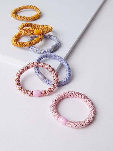 Otroške dekliške elastike za lase, 4 kosi v pakiranju. Material: 50% poliester, 30% elastan, 20% plastika. 0,99€/kos.