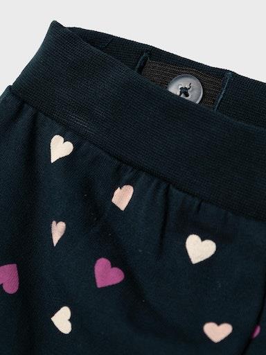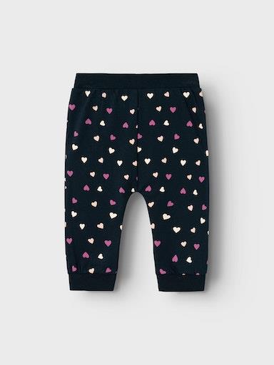 Otroške dekliške mehke in udobne hlače z all over vzorcem, z elastiko in vrvico v pasu, z mehkim patentom na zaključkih, regular kroj, nastavljiva širina pasu. Material: 95% ekološki bombaž, 5% elastan