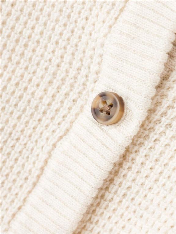 Otroška unisex pletena jopa iz prijetnega ekološkega bombaža, z rebrastimi zaključki, zapenjanje na gumbe, regular kroj, dolg rokav. Material: 100% ekološki bombaž