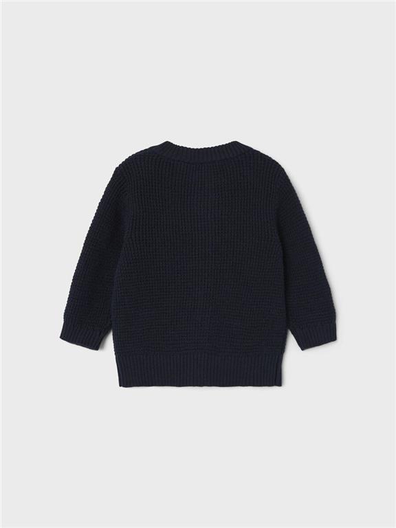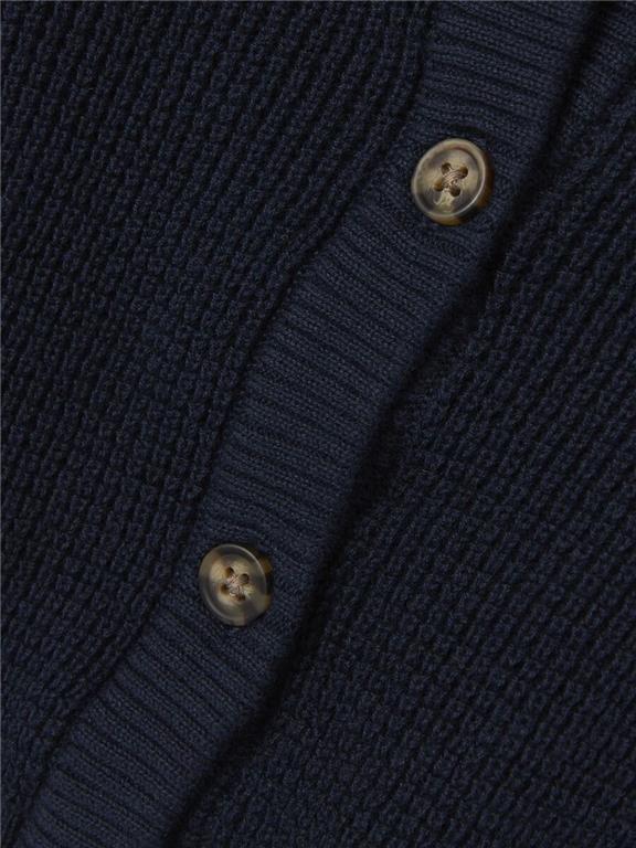 Otroška unisex pletena jopa iz prijetnega ekološkega bombaža, z rebrastimi zaključki, zapenjanje na gumbe, regular kroj, dolg rokav. Material: 100% ekološki bombaž