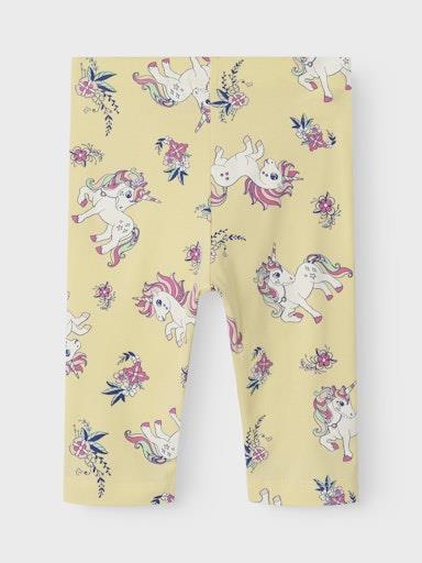Otroške dekliške capri legice z elastiko v pasu, s prikupnim all over vzorcem, udoben in raztegljiv kroj. Material: 95% bombaž, 5% elastan
