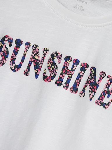 Otroška dekliška modna majica iz prijetnega in udobnega bombaža, z napisom spredaj, z zavihkom na rokavu, rahlo podaljšana zadaj, kratek rokav. Material: 100% bombaž
