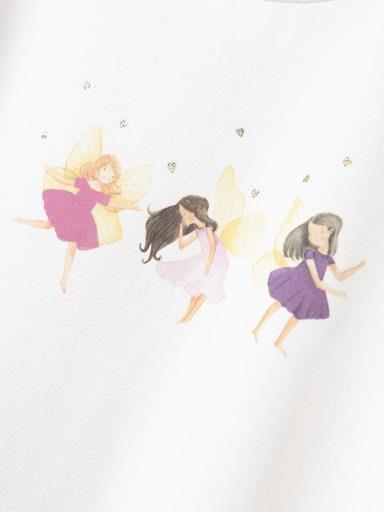 Otroška dekliška majica iz udobnega in prijetega ekološkega bombaža, s prikupnim potiskom spredaj, z bleščičastimi detajli, regular kroj, dolg rokav. Material: 95% ekološki bombaž, 5% elastan