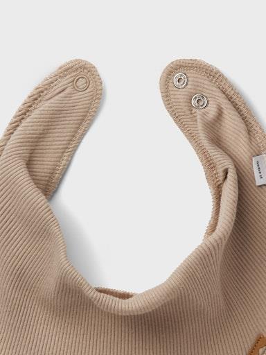 Zelo praktičen, večnamenski otroški slinček/dekorativna rutica, podložena z mehkim flisom, ki preprečuje, da bi mokrota hitro prešla na majico. Iz mehkega rebrastega, strukturiranega materiala. Lahko ga uporabite tudi pri večjih malčkih kot dekoracijo oz. zaščito vratu pred mrazom. Zapiranje s pritiskačem, možnost nastavitve dveh obsegov. Material: zgoraj: 100% ekološki bombaž; spodaj: 100% poliester