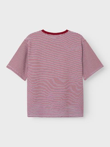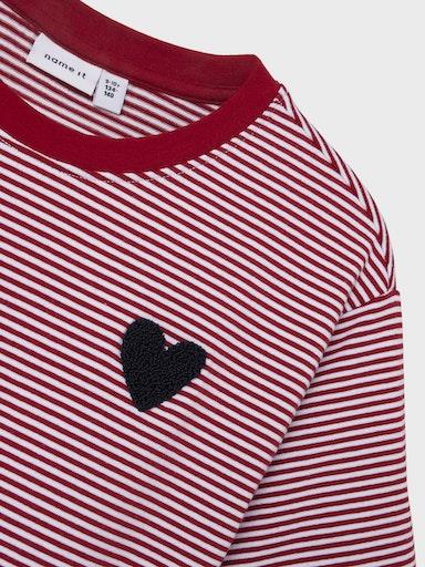 Otroška majica za dekleta z all over črtastim vzorcem, z dekorativnim 3D našitkom spredaj, regular kroj, kratek rokav. Material: 100% bombaž