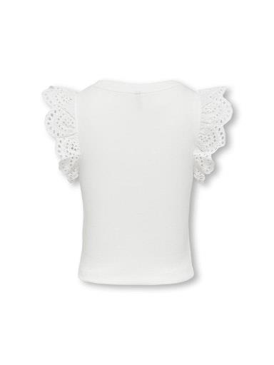 Otroška dekliška modna majica blagovne znamke KIDS ONLY, iz prijetnega rebrastega materiala, z volančki na rokavih, z luknjičastim vzorcem, oprijet kroj, kratek rokav. Material: 95% bombaž, 5% elastan