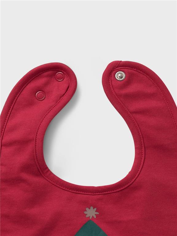 Zelo praktičen, večnamenski otroški slinček/dekorativna rutica, podložen z mehkim flisom, ki preprečuje, da bi mokrota hitro prešla na majico. S prikupnim božičnim motivom spredaj, malo večji kot ostale rutice. Lahko ga uporabite tudi pri večjih malčkih kot dekoracijo oz. zaščito vratu pred mrazom. Zapiranje s pritiskačem, možnost nastavitve dveh obsegov. Material: zgoraj: 100% ekološki bombaž; spodaj: 100% poliester.
