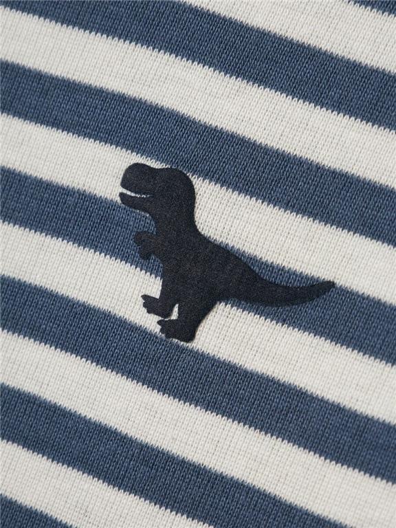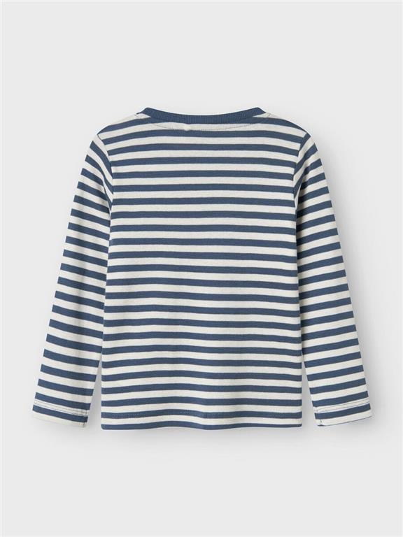 Otroška fantovska majica z all over črtastim vzorcem, s potiskom spredaj, slim kroj, dolg rokav. Material: 100% bombaž