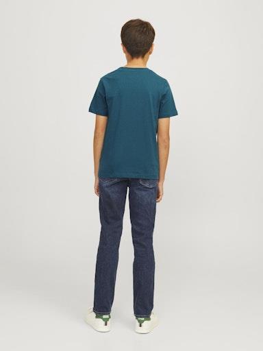 Otroška modna majica blagovne znamke JACK&JONES JUNIOR, iz prijetnega in udobnega bombaža, z mehkim potiskom spredaj, udoben in prijeten kroj za nošenje, kratek rokav. Material: 100% ekološki bombaž