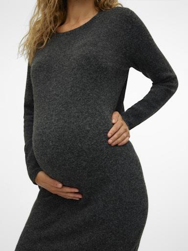 Nosečniška modna in udobna obleka iz fine in mehke pletenine blagovne znamke VERO MODA MATERNITY, s patentom na zaključkih, prilagodljiv za rastoč trebušček, dolžina do kolen. Material: 52% recikliran poliester, 42% poliester, 3% elastan, 3% najlon