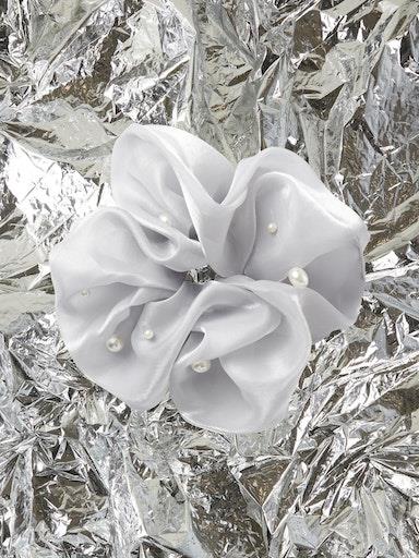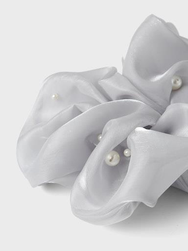 Otroška dekliška velika in široka elastika - "scrunchie", z našitimi dekorativnimi perlicami različnih velikosti. Material: 90% poliester, 10% elastan