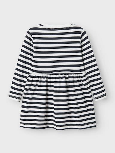 Otroška dekliška obleka v all over vzorcu, z elastiko v pasu, rahlo širši in nabran spodnji del, dolg rokav. Material: 100% bombaž