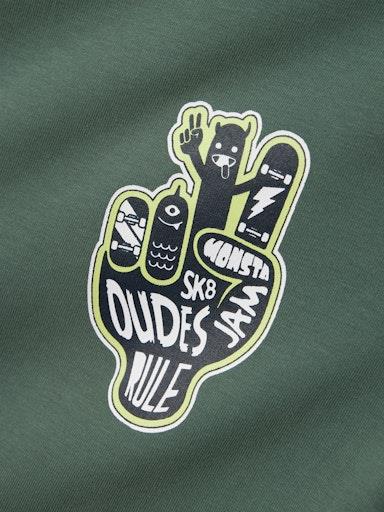 Otroška fantovska mehka in udobna majica z dekorativnim potiskom, regular kroj, dolg rokav. Material: 95% ekološki bombaž, 5% elastan