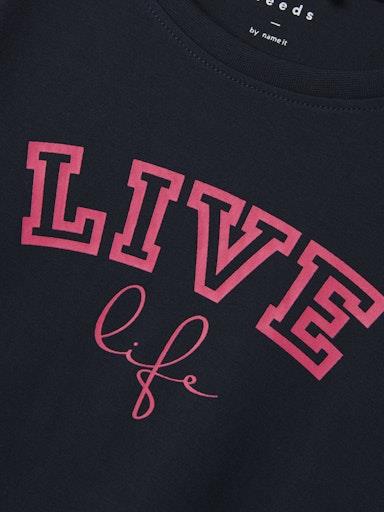 Otroška dekliška majica z dekorativnim potiskom, iz mehkega in prijetnega bombaža, regular kroj, dolg rokav. Material: 95% ekološki bombaž, 5% elastan