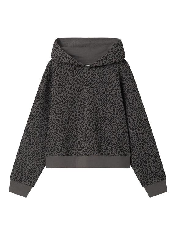 Otroški dekliški pulover s kapuco iz prijetnega in udobnega bombaža, z all over vzorcem, z mehkim enobarvnim patentom na zaključkih, kosmaten material, rahlo krajši kroj, dolg rokav. Material: 95% bombaž, 5% elastan