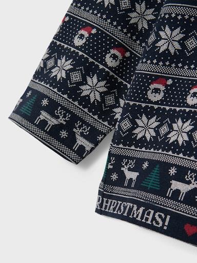Otroška unisex pižama z božičnim all over motivom, majica z dolgimi rokavi ter spodnji del z elastiko v pasu in patentom na hlačnicah. Material: 95% bombaž, 5% elastan