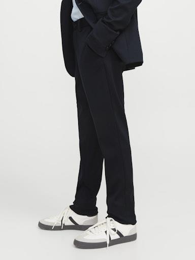 Otroške fantovske modne elegantne hlače blagovne znamke JACK&JONES JUNIOR, z dvema žepoma spredaj in dvema žepoma z gumbom zadaj, z zankami za pas, iz prijetnega in razteglijivega materiala, slim kroj. Material: 79% poliester, 18% viskoza, 3% elastan. MOČNA TEMNO MODRA BARVA.