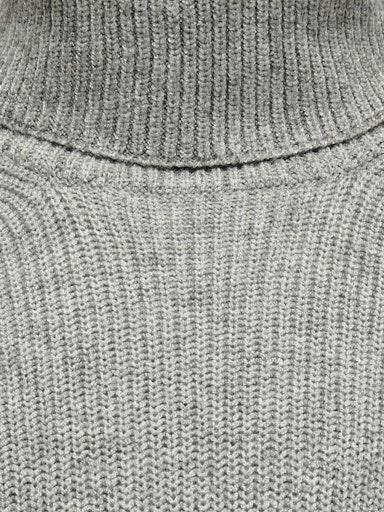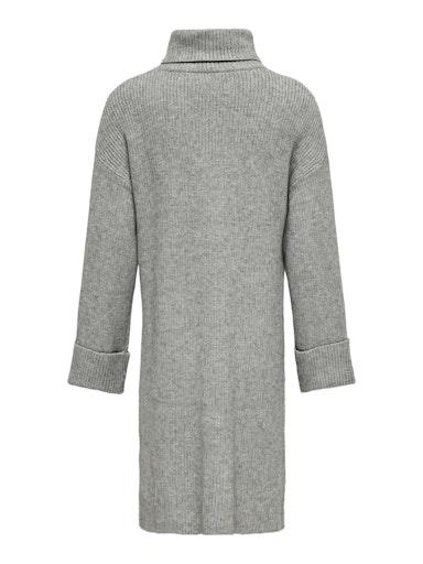 Otroška modna in udobna obleka blagovne znamke KIDS ONLY, iz fine in mehke pletenine, z rebrasto strukturo, z visokim ovratnikom (kot puli) in širokimi zavihki na rokavih, z rahlo spuščenimi rameni, regular kroj, dolžina do kolen, dolg rokav. Material: 50% viskoza, 27% najlon, 23% poliester