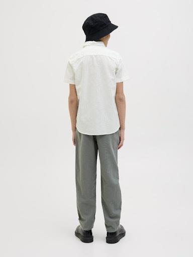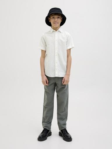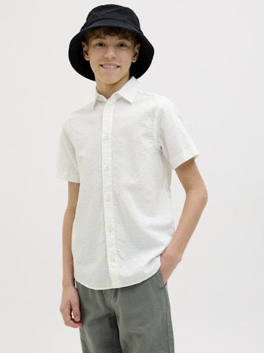 Otroška modna fantovska srajca blagovne znamke JACK&JONES s klasičnim ovratnikom, iz prijetne in lahke kombinacije bombaža in lana, zapenjanje na gumbe, prijeten in mehak material, regular kroj, kratek rokav. Material: 70% bombaž, 30% lan